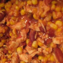 - Pour bag of frozen corn in bottom of crockpot. Place frozen chicken breasts on top of corn and cover with rinsed and drained black beans and jar of medium salsa.