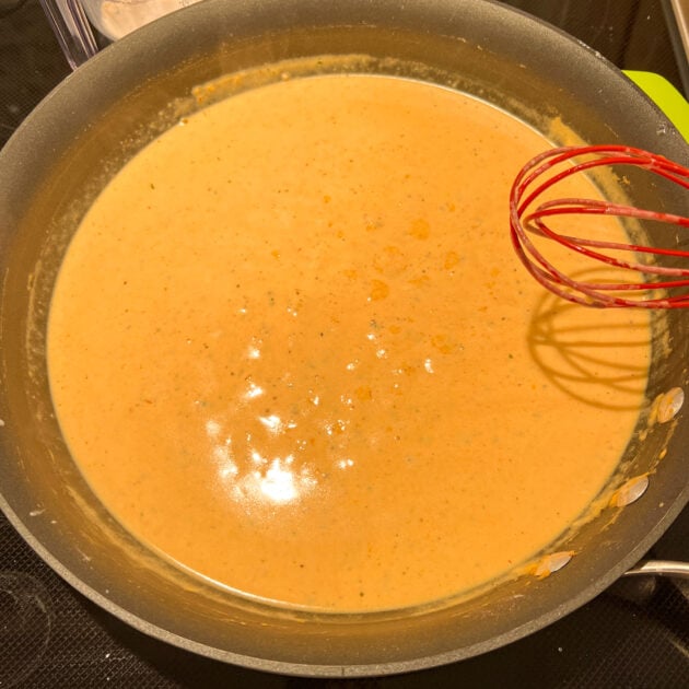 First up is to begin with a simple roux from butter and flour. Then you add in a little garlic and tomato paste along with some onion powder, basil, oregano, and mustard powder. This is where all the flavor to this sauce comes in.