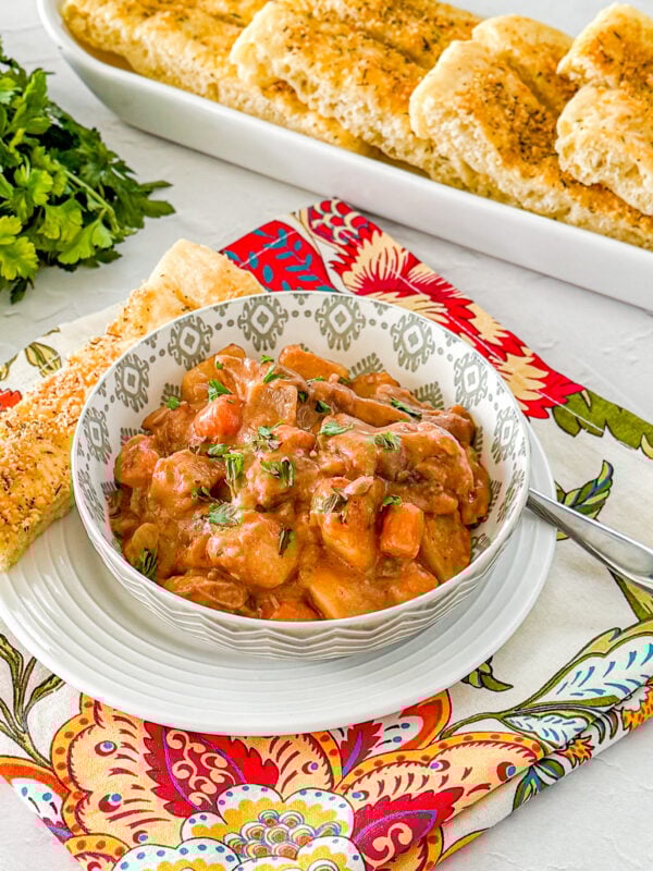 Be sure to come back on Thursday—I’ll be sharing a recipe for the perfect dippable breadsticks to serve alongside this cozy stew. They’re soft, buttery, and just the right shape for swiping up every last bit of that rich, savory sauce. Honestly, one of my favorite parts of this easy meal is using a warm breadstick to wipe my bowl clean.
