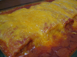 This a a good way to fancy up good old frozen burritos. You could used canned enchilada sauce and do the same thing, but I really like this recipe for the sauce. I made the sauce thicker than what the original recipe was. The original recipe also used bean and cheese burritos, but we usually have beef and bean.