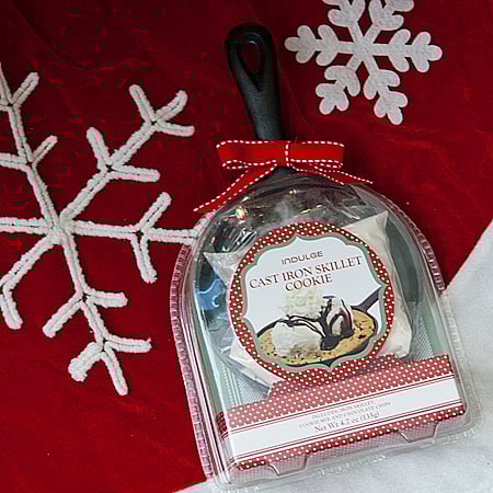 I have wanted a little cast iron for cookies for a whole know to make what I know as a skookie. Â I found this at Walmart that includes the cast iron skillet along with a cookie mix. Â You don’t even have to wrap it to give because it is packaged perfectly! Â The cost for this at my Walmart was $4.95, and I found it in the holiday section.