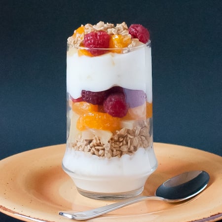 I love yogurt parfaits for breakfast. It is a simple way to dress up the usual morning yogurt. Just layer some fruit, granola, and yogurt in a clear glass and you are set. You could even make homemade granola and give it to mom as a gift!