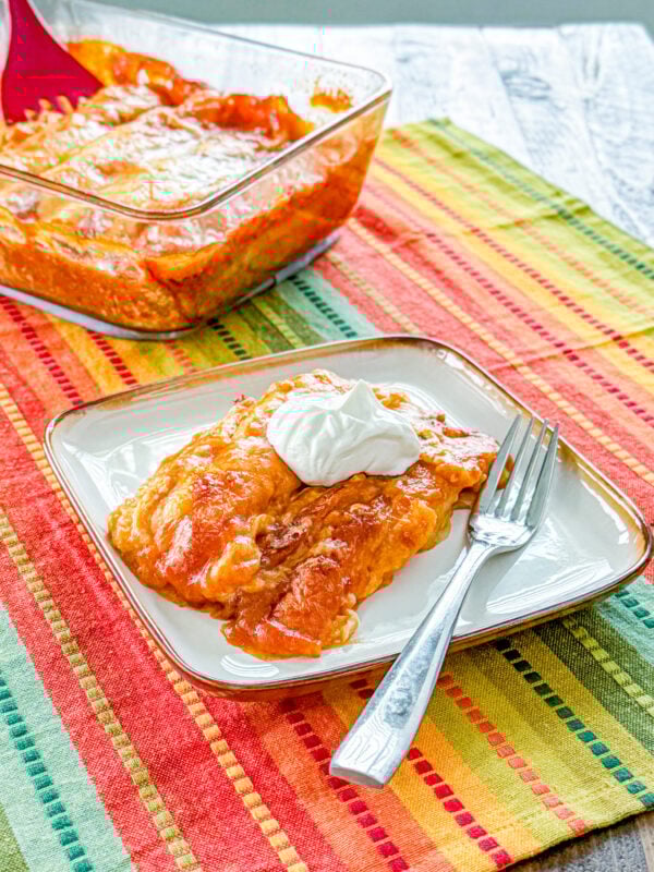 For individual portions, you can reheat them in the microwave by placing the enchilada on a microwave‑safe plate and covering it with a damp paper towel. Heat for 4–5 minutes, checking for even warming. You can also reheat in the air fryer—preheat to 350°F, place the enchilada in the basket, and cook for 10–15 minutes for crisp, golden edges.