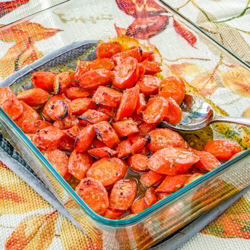 Absolutely. Baby carrots work well and save prep time—just adjust the sauté and bake time slightly to ensure they’re tender.