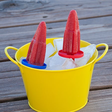 Pour the liquid into popsicle molds about 1/4 inch from the top of each mold. Place in the freezer and freeze for several hours or overnight until firm. There are so many fun molds out these that can make popsicles in all kinds of fun shapes. The mold I used to make these was just from the dollar store.