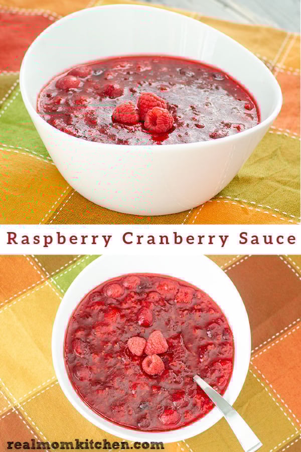 My favorite way to enjoy turkey on Thanksgiving is topped with a homemade cranberry sauce just like this Raspberry Cranberry Sauce. Homemade cranberry sauce is SOOOOOO much better than what you can get in a can. Plus, it doesn’t take much effort to make. You can even make it days ahead.