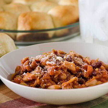 - While bean mixture simmers, cook the pasta in the boiling water according to the package (about 9 minutes).