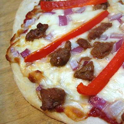 This recipe comes from Melanie over at My Kitchen Cafe. The other great thing about this crust is you mix it with cold water. If you are a person who tends to shy away from yeast and have problems with getting the water just right without killing the yeast, this is the recipe for you! And or course I topped this dough off with my homemade pizza sauce.